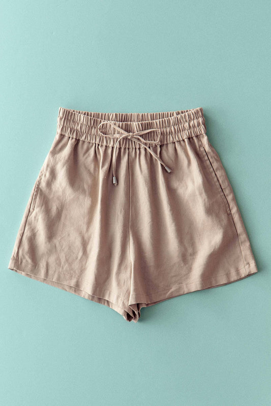Linen Blend Elastic Waist Drawstring Shorts