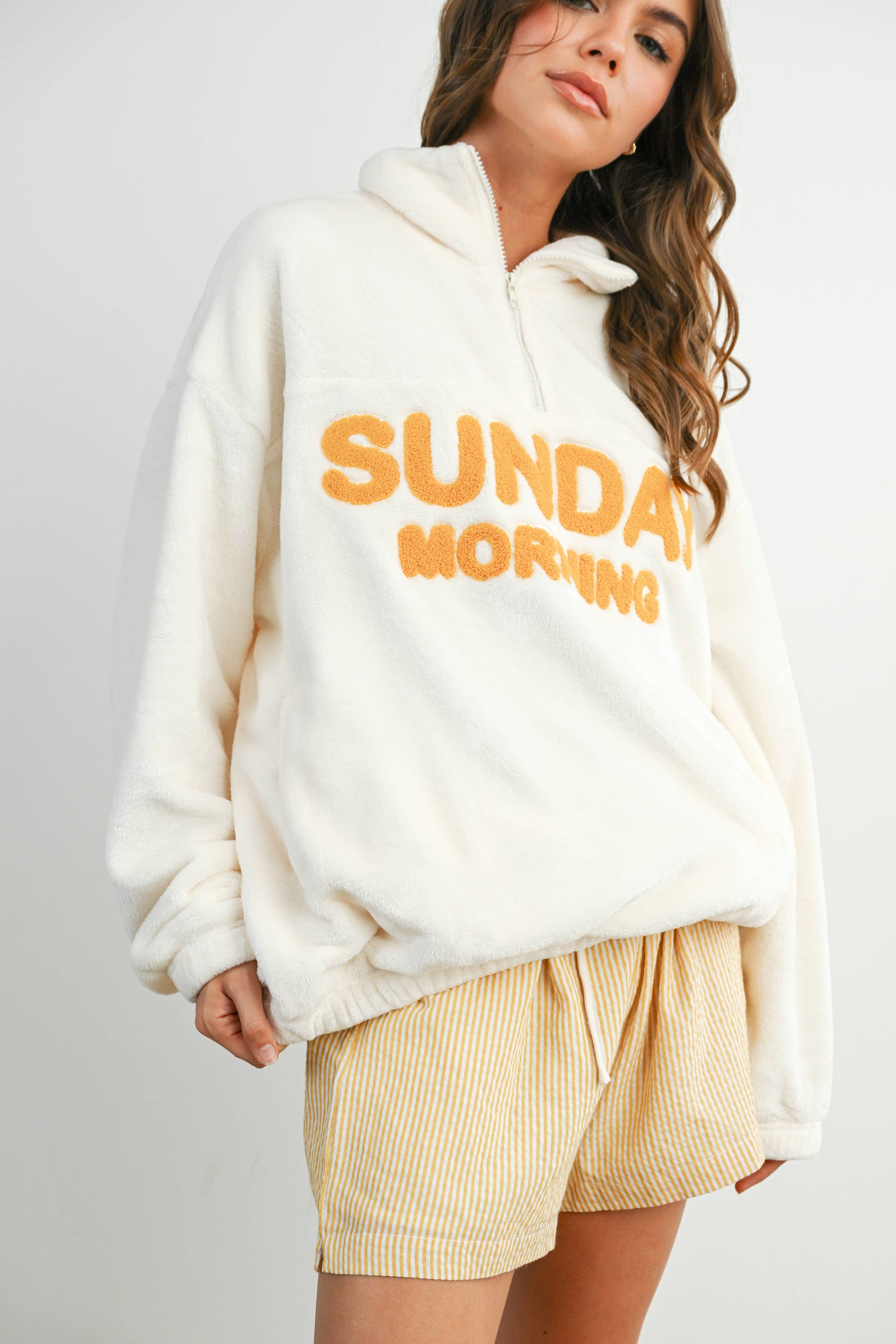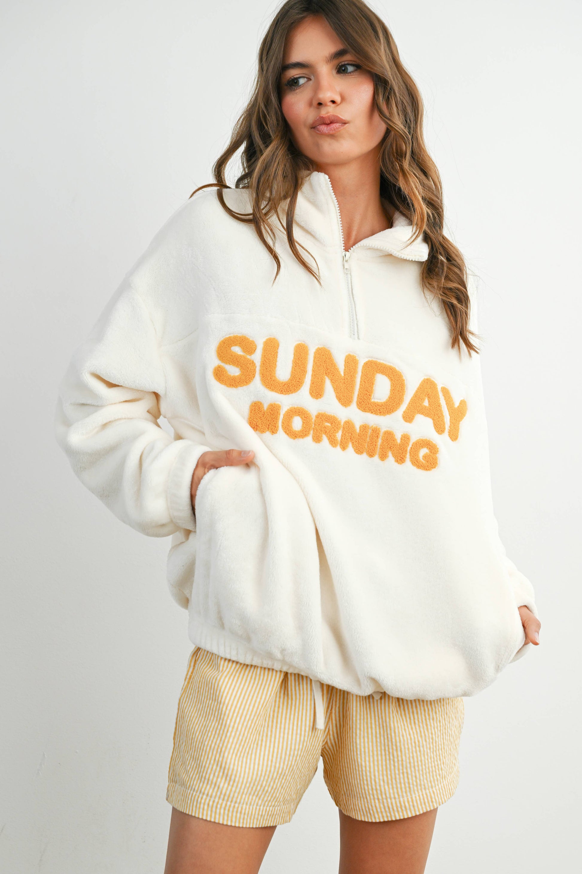 Introducing the Sunday Morning Half-Zip Pullover Sweatshirt - the perfect blend of comfort and style for those casual, laid-back mornings. Made from soft, breathable fabric, this half-zip pullover is designed to keep you cozy without sacrificing mobility. The relaxed fit makes it easy to layer, while the half-zip design adds a touch of versatility and convenience. Whether you're heading out for a morning stroll or lounging at home, this jacket is a must-have for effortless weekend wear.
